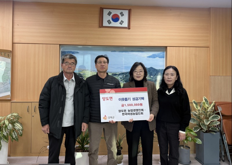 양도면 농업경영인회와 한국여성농업인회가 관내 취약계층을 위해 사용해 달라며 각각 100만 원(농업경영인회)과 50만 원(한국여성농업인회)의 성금을 전달했다.