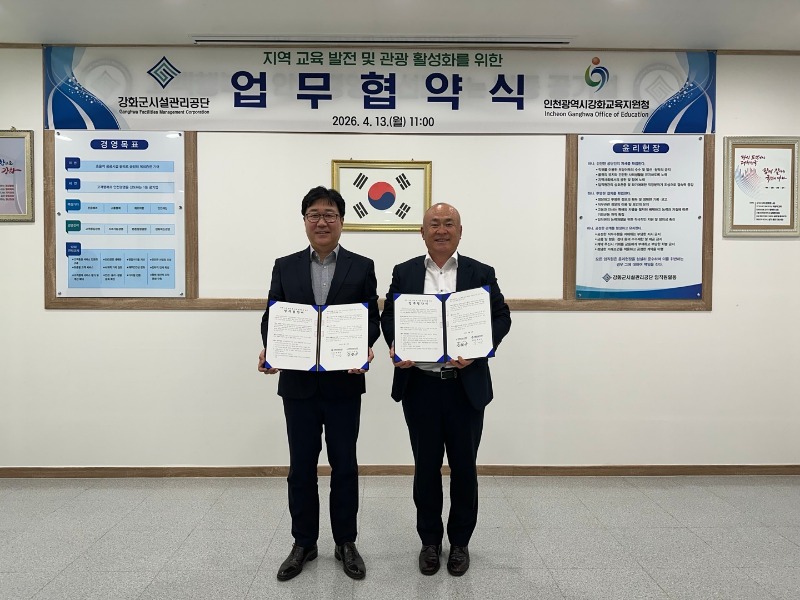 인천강화교육지원청(교육장 김철규)은 13일 강화군시설관리공단과 ‘지역 교육 발전 및 관광 활성화를 위한 업무협약’을 체결했다.