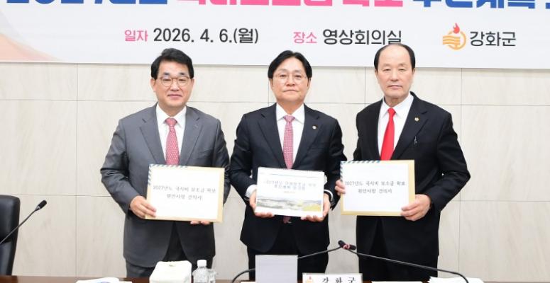 “국비 확보 위해 똘똘 뭉쳤다”강화군(군수 박용철)은 6일 박용철 군수 주재로 ‘2027년도 국비보조금 확보 추진계획 보고회’를 개최하고, 국비 확보에 행정력을 총동원하겠다는 강력한 의지를 밝혔다.특히 이번 보고회에는 배준영 국회의원과 윤재상 인천광역...
