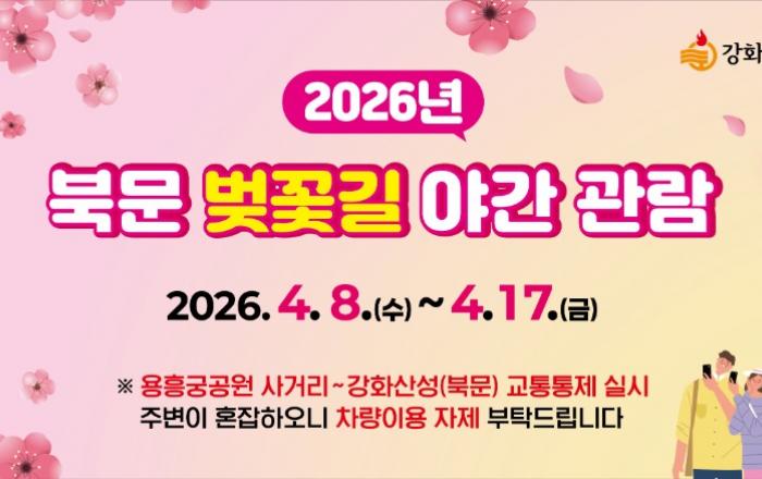 북문 벚꽃! 이번에 안 가면 1년 기다림!!밤이 더 아름다운 벚꽃길강화 북문 벚꽃길 야간 개방!2026년 북문 벚꽃길 야간 관람- 4월 8일(수)~17일(금)- 버스킹 공연도 예정돼 있으니 참고해주세요~...