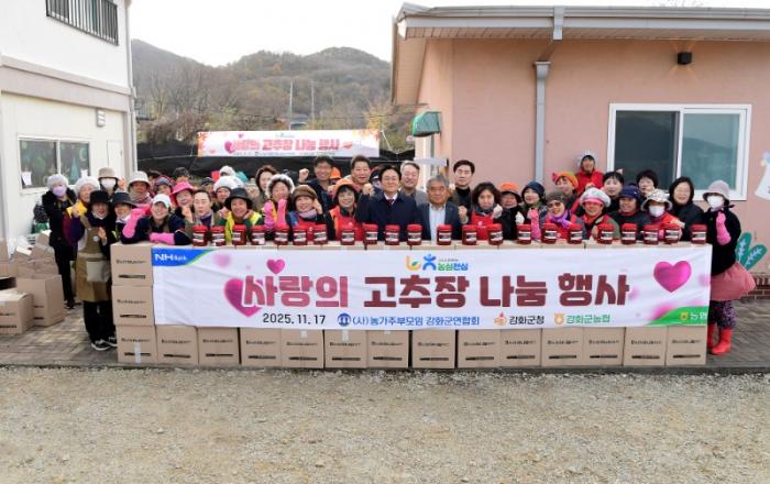 강화군(군수 박용철)이 지난 17일, 농가주부모임(회장 김미경)에서 다가오는 겨울철을 앞두고 소외 이웃을 위한 ‘사랑의 고추장 나눔’ 행사를 개최했다고 밝혔다.이번 행사는 농가주부모임 강화군연합회에서 개최한 이웃 사랑 실천 행사로, 회원들은 이른 아침부터 모여 고추장