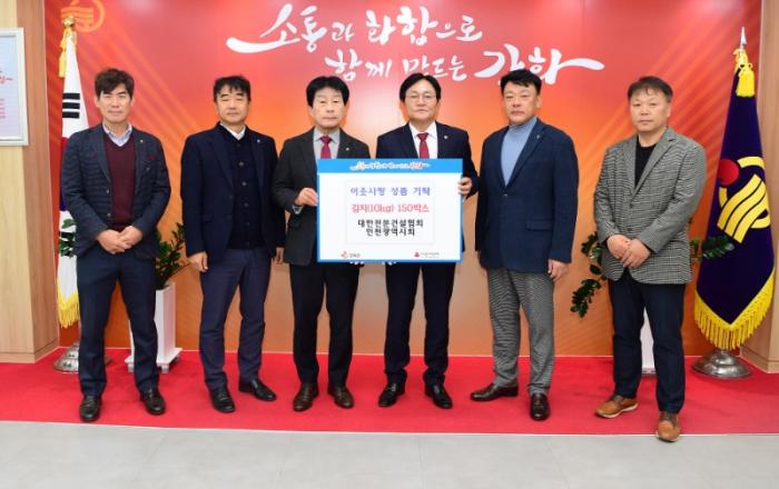 강화군(군수 박용철)은 지난 17일, 대한전문건설협회 인천광역시회(회장 조흥수)에서 소외 이웃을 위한 김장 김치(10kg) 150박스(환가액 700만 원 상당)를 강화군에 기탁했다고 전했다.이번 기탁은 협회에서 매년 진행하는 ‘사랑행복 김장 담그기’ 봉사활동의 일환으로
