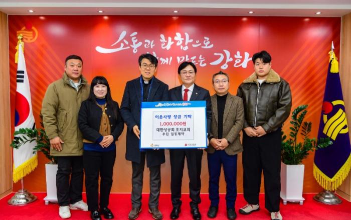 강화군(군수 박용철)은 대한성공회 초지교회(신부 김돈회)가 10일 일동제약의 후원 물품을 통해 진행한 바자회 수익금 100만 원을 사회복지공동모금회를 통해 강화군에 기탁했다고 밝혔다. 초지교회 김돈회 신부는 “지역 내 나눔 문화를 확산하고 취약계층을 지원하기 위해 교인