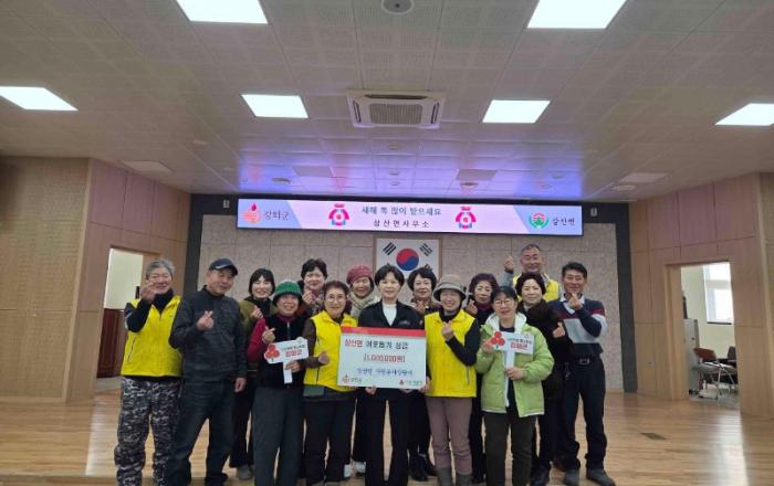 강화군 삼산면(면장 고영자)은 지난 26일, 삼산면 자원봉사상담가(회장 김병선)에서 어려운 이웃을 위한 성금 100만 원을 전달하며 지역사회에 온정을 더했다고 밝혔다.전달된 성금은 사회복지공동모금회를 통해 생활이 어려운 저소득 취약 가구 및 홀몸 어르신 등 관내 도움이