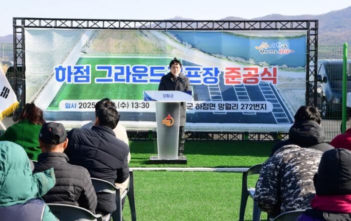 강화군(군수 박용철)은 지난 3일 하점면 망월리 일원에서 생활체육 활성화와 주민 건강 증진을 위해 조성한 그라운드골프장 준공식을 개최했다. 이번에 준공된 하점 그라운드골프장은 총사업비 9억 원을 투입해 약 2,200㎡ 규모의 경기장과 주차장 24면, 휴게실 1동 등을