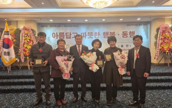 강화군복지재단(이사장 한석현)이 지난 27일, 명진웨딩홀에서 창립 3주년을 맞아 ‘아름답고 따뜻한 행복·동행!’ 행사를 개최했다.이번 행사는 강화군 경영자협의회와 공동으로 주최했으며, 지역 내 어려운 이웃 300여 명을 초청해 함께하는 자리로 마련됐다.행사에는 박용철