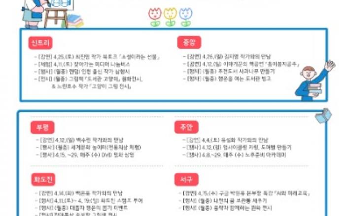 인천광역시교육청 공공도서관은 제62회 도서관주간을 맞아 4월 한 달간 ‘도서관 속 작은 펼침, 세상을 여는 큰 열림’을 주제로 다양한 독서문화행사를 운영한다.이번 행사는 인천광역시교육청신트리도서관을 비롯한 관내 8개 공공도서관이 공동 참여하며, 시민들이 도서관을 일상