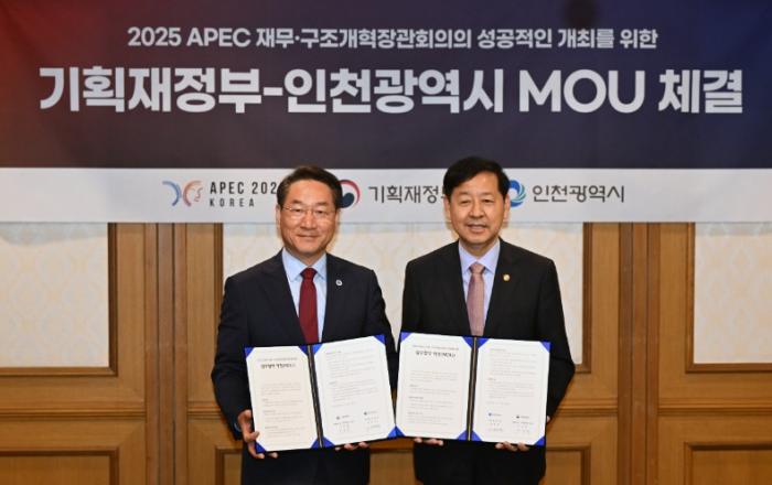 인천광역시(시장 유정복)는 9월 11일 기획재정부와 ‘2025년 APEC 재무·구조개혁장관회의의 준비를 위한 업무협약(MOU)’을 체결했다고 밝혔다.이날 협약식은 정부서울청사에서 열렸으며 유정복 인천시장과 구윤철 부총리를 비롯한 관계자들이 참석했다.오는 10월 20일부