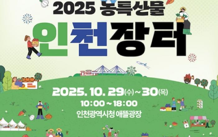 인천광역시(시장 유정복)는 오는 10월 29일부터 30일까지 이틀간, 인천시청 애뜰광장에서‘2025 농특산물 인천장터’를 개최한다고 밝혔다.이번 행사는 인천시가 주최하고 ㈜농협경제지주 인천본부가 주관하며, 판로 확보에 어려움을 겪고 있는 지역 농특산물 생산 농업인을 지