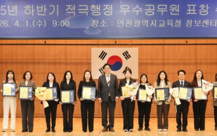 인천광역시교육청(교육감 도성훈)은 1일 정보센터 대회의실에서 ‘2025년 하반기 적극행정 우수공무원 표창 수여식’을 개최했다.이번 수여식에서는 교육현장 중심의 문제 해결과 민원 처리 방식 개선 등 다양한 분야에서 헌신하며, 교육 수요자의 만족도를 높인 우수공무원 15명