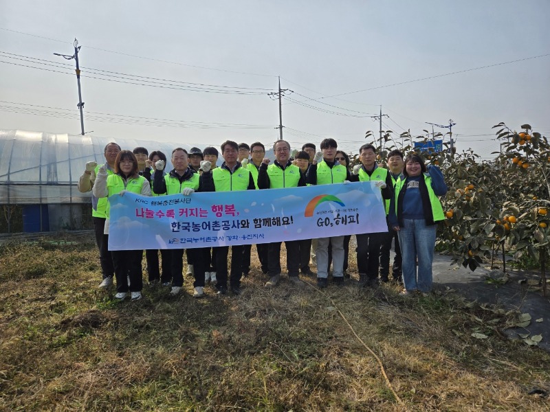 이날 일손돕기에는 한국농어촌공사 강화옹진지사 직원 25명이 참여해 감 수확, 과수 주변 영농폐자재 수거, 주변 정리 등 농가 일손 보태기에 힘을 쏟았다.