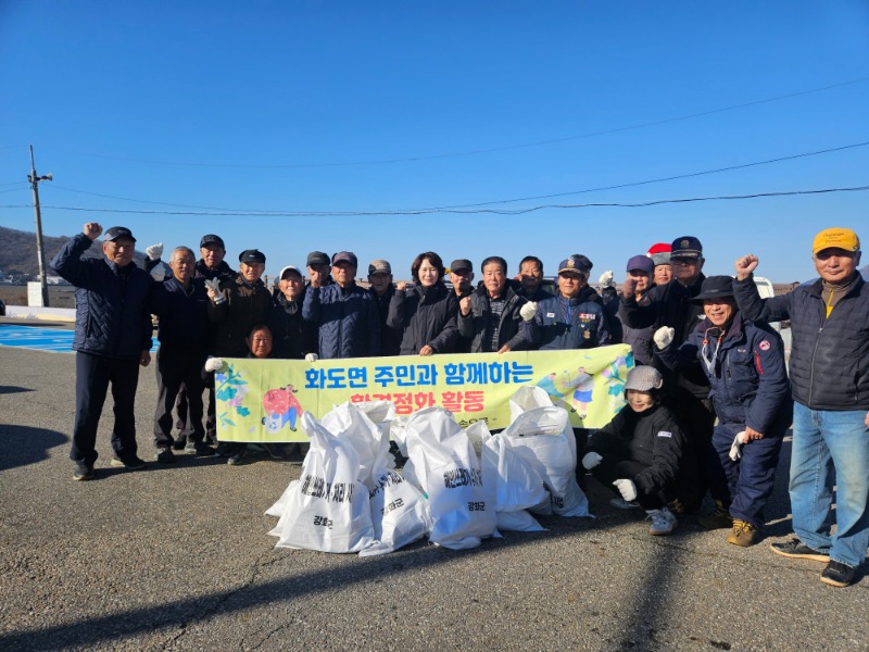 이번 활동은 내리 소루지 주변 해안가와 인근의 폐어구, 생활 쓰레기, 페트병, 스티로폼 등 해안가에 버려진 쓰레기를 집중 수거하는 작업으로, 회원들은 아름다운 화도면 조성에 구슬땀을 흘렸다.