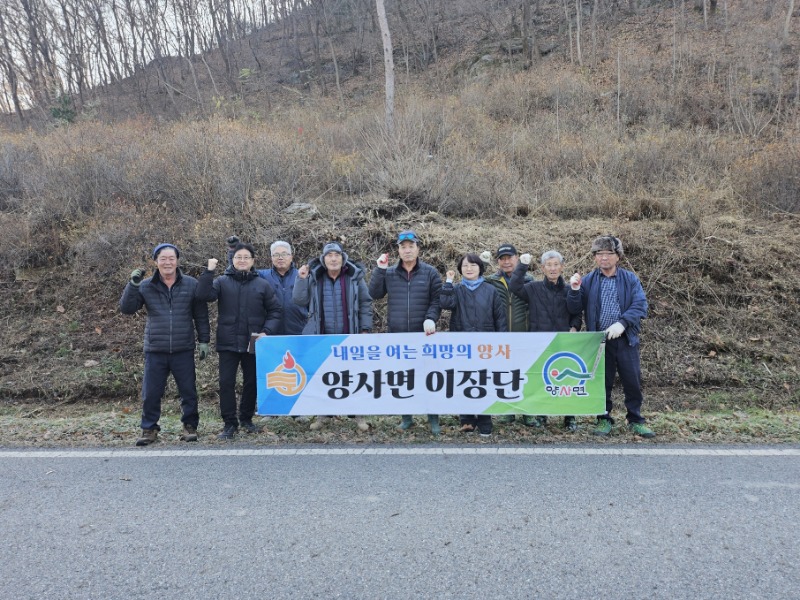 강화군 양사면 이장단(단장 조재현)은 지난 11월 28일부터 나흘간 북성리 일대의 주요 화단인 진달래 군락지 일원의 도로변 제초 작업 등 환경정비를 실시하였다.