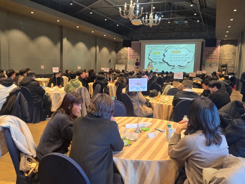 1부에서는 ‘작은 학교의 큰 배움 사례 나눔’을 주제로 작은학교특색교육과정과 초·중등 결이음교육과정 운영 사례를 공유했으며 2부에서는 2025학년도 운영 결과 및 만족도 조사, 교원연구공동체 성찰 자료를 바탕으로 교육과정 운영 성과와 개선 방향을 논의했다.