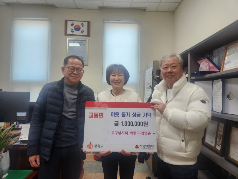 이번 기부금은 사회복지공동모금회를 통해 관내 저소득 어르신, 장애인 등 교동면에 도움이 필요한 이웃을 위해 쓰일 예정이다.