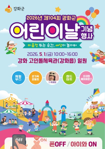 제104회 어린이날을 맞아 어린이날 기념행사 개최 최벽하 기자 발행 2026-04-28 14:58 Facebook Twitter band 네이버블로그 카카오스토리 카카오톡 글자작게 글자크게 <저작권자 ⓒ 강화투데이, 무단 전재 및 재배포 금지> 최벽하 기자 다른기사보기