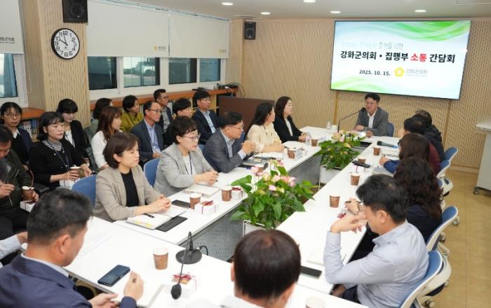 강화군의회(의장 한승희)는 15일 강화군의회 의장 주재로 집행부 각 부서 주무팀장들과 소통 간담회를 개최했다.이번 간담회는 강화군의 주요 정책에 대한 공감대 형성과 각종 현안 사업에 대한 해결 방안을 모색하기 위해 마련된 자리로, 의회와 집행부 간 긴밀한 소통을 통해 지역 현안을 효과적으로 해결하기 위한 취지로 열렸다.특히 이번 간담회는 ...