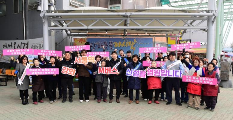강화군(군수 박용철)이 서울역 M버스(광역급행버스) 노선 유치를 위해 총력을 기울이는 가운데, 설 명절 연휴에도 범군민 공감대 확산을 위한 현장 서명운동을 이어갔다고 밝혔다. 군은 설 명절 대목을 앞둔 지난 13일 인파가 몰린 강화풍물시장에서 서명운동...