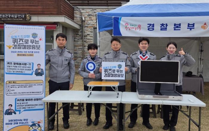 인천강화경찰서(서장 고성한)에서는 지난 11일 수도권 최대 봄축제인 ‘고려산 진달래 꽃구경’의 방문객들을 대상으로 대대적인 범죄예방 홍보 활동을 펼쳤다고 전했다. 이날 범죄예방과 직원들은 직접 행사장에 진출하여 유명 TV 예능 프로그램 “유퀴즈 온더 블록”을 벤치마킹한 ‘유퀴즈?! 온더 강화’를 개최, ▵주요 범죄 수법 및 유형▵다양한 범...