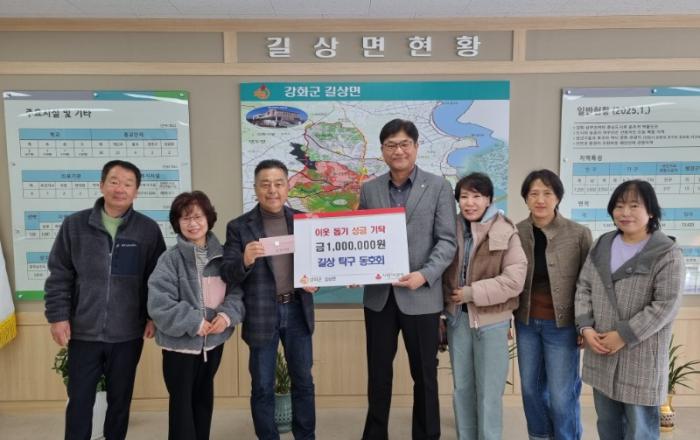 강화군 길상면(면장 서광석)은 지난 21일, 길상탁구동호회(회장 유강희)에서 회원들의 정성으로 모은 성금 1백만 원을 관내 취약계층을 위해 기부했다고 밝혔다.유강희 회장은 “연말을 맞아 회원들과 뜻을 모아 어려운 이웃에게 도움이 됐으면 하는 마음으로 기부를 결심하게 됐