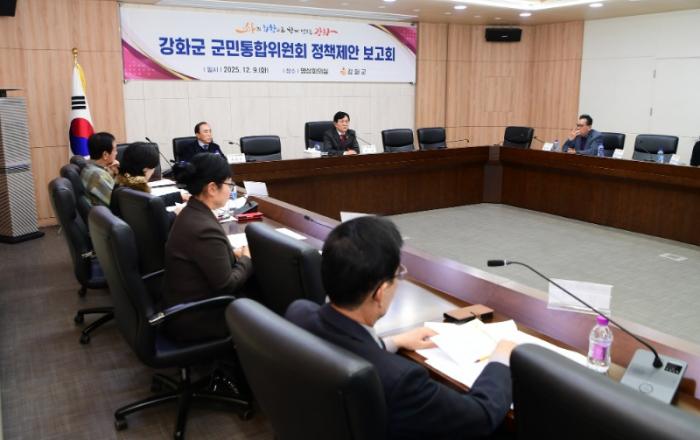 강화군(군수 박용철)은 지난 9일 군민통합위원회에서 제2회 정책 제안 보고회를 개최하고, 각 분과위원회를 통해 접수된 15건의 신규 제안에 대해 추진 방향을 논의했다고 밝혔다.이번 회의는 지난 9월 개최된 1차 정책 제안 보고회에 이어, 위원회에 추가로 접수된 군민 정