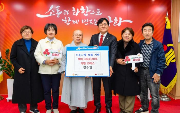 강화군(군수 박용철)은 관내 사찰 청수암(주지 가담 스님)은 지난 10일 지역 내 취약계층 지원을 위해 라면 10박스와 쌀(10kg) 30포를 인천사회복지공동모금회를 통해 기탁했다.이번 기탁은 겨울철 어려움을 겪는 가정에 실질적인 도움을 전하기 위해 마련된 것으로, 전