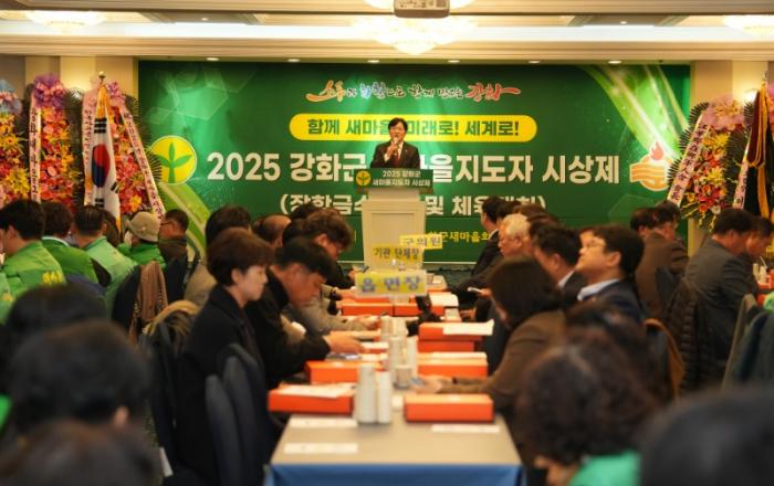 강화군 새마을회(회장 조인술)는 지난 10일 명진부페에서 ‘2025년 강화군 새마을지도자 시상제 및 체육대회’를 성황리에 개최했다. 이날 행사는 박용철 강화군수와 한승희 강화군의회 의장을 비롯한 기관 단체장, 새마을지도자 등 350여 명이 참석한 가운데 열렸다. 올 한