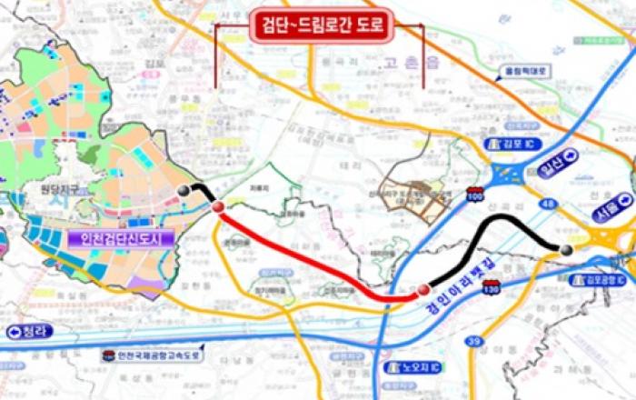 인천광역시(시장 유정복)와 한국토지주택공사(LH)는 검단지역 광역교통개선을 위해 추진해 온 검단∼드림로간 연결도로를 4월8일 오후 2시에 개통한다고 밝혔다.이번 개통되는 도로는 광역시도52호선(총연장19.7km)구간 일부로, 연장 3.59km의 왕복 4차로 규모다. 총