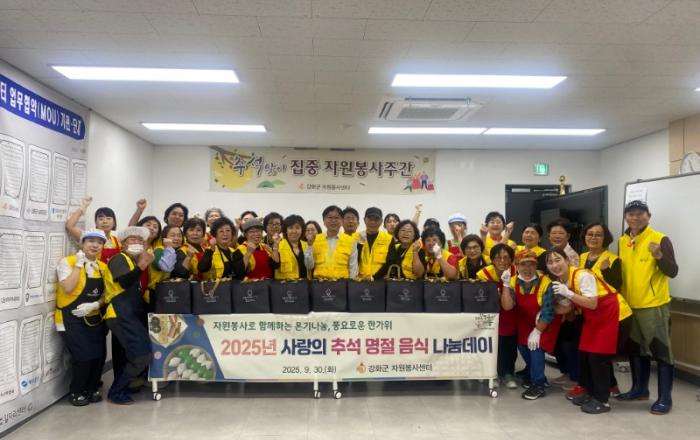 강화군자원봉사센터(센터장 한양수)가 지난 30일, 추석 명절을 맞아 ‘2025년 사랑의 추석 명절 음식 나눔데이’ 행사를 개최했다.이번 행사에는 읍‧면 자원봉사상담가, 학부모회 등 30여 명의 자원봉사자들이 함께했으며, 행사 전날부터 소불고기, 잡채, 식혜, 전 세트,