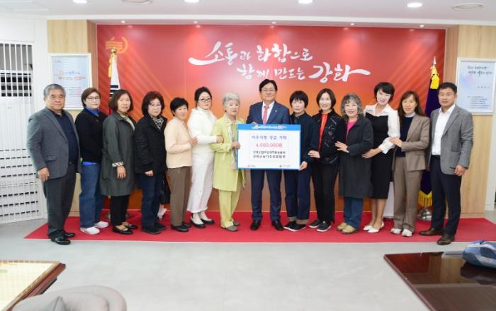 강화군(군수 박용철)은 강화농협여성대학총동문회(회장 이미자)와 강화군농가주부모임(회장 황인옥)이 지난 11일 바자회 수익금 400만 원을 사회복지공동모금회를 통해 강화군에 기탁했다고 밝혔다.이미자 강화농협여성대학총동문회 회장은 “회원들이 한마음으로 바자회를 준비하고 운