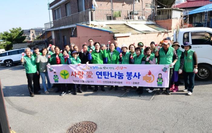 강화군 강화읍 남녀새마을 지도자(회장 신봉기, 부녀회장 김은숙)가 지난 12일, 온정을 전하기 위한 ‘사랑愛 연탄 나눔’ 봉사를 진행했다. 이날 강화읍 남녀새마을 지도자는 추운 겨울을 대비해 홀몸 어르신과 저소득 가정 등 취약계층에 연탄 500여 장을 전달했다.봉사에