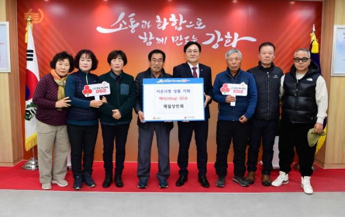 강화군(군수 박용철)은 지난 15일 제일 상인회(회장 김명호)가 지역사회 어려운 이웃을 돕기 위해 쌀(10kg) 50포를 사회복지공동모금회를 통해 기탁했다고 밝혔다.이번에 전달된 쌀은 강화군 푸드마켓을 통해 저소득 가구와 복지 사각지대에 놓인 주민들에게 지원될 예정이며