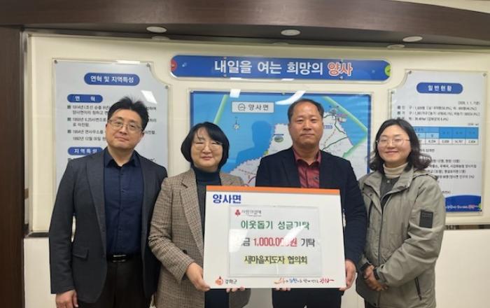 ▲ 양사면, 관내 단체에서 기부 손길 이어져(양사면새마을지도자협의회)강화군 양사면(면장 이지영)이 지난 9일, 새마을지도자협의회와 농업 단체들이 이웃돕기 성금을 기탁하며 따뜻한 나눔의 손길을 이어가고 있다고 밝혔다.이날 양사면 새마을지도자협의회(회장 이상덕)는 성금 1