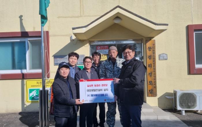 강화군 길상면(면장 서광석)은 지난 18일, ㈜제이에이치에너지에서 동검리 경로당에 태양광 설비를 지원했다고 전했다.㈜제이에이치에너지는 지역사회 에너지 복지 향상을 위해 지속적인 나눔과 지원을 펼치고 있는 기업이다.이날 현장에는 군청 일자리경제과 조영진 과장, 서광석 길