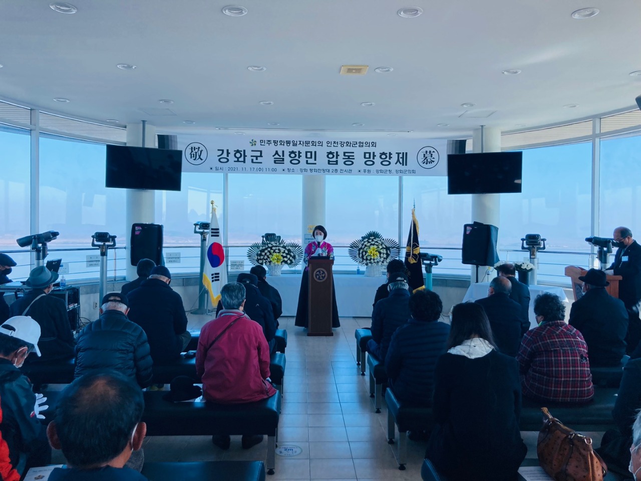 이날 강화평화전망대 전시관에서 열린 실향민 합동 망향제에서 많은 실향민과 북한이탈주민들이 북에 두고 온 가족들에게 헌화를 하며 경모하는 의미있는 시간을 가졌다,