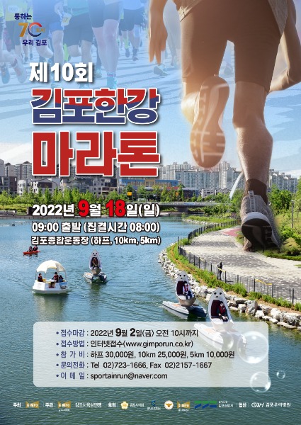 참가신청은 오는 9월2일까지 김포한강마라톤 홈페이지(www.gimporun.co.kr)를 통해 가능하다.
