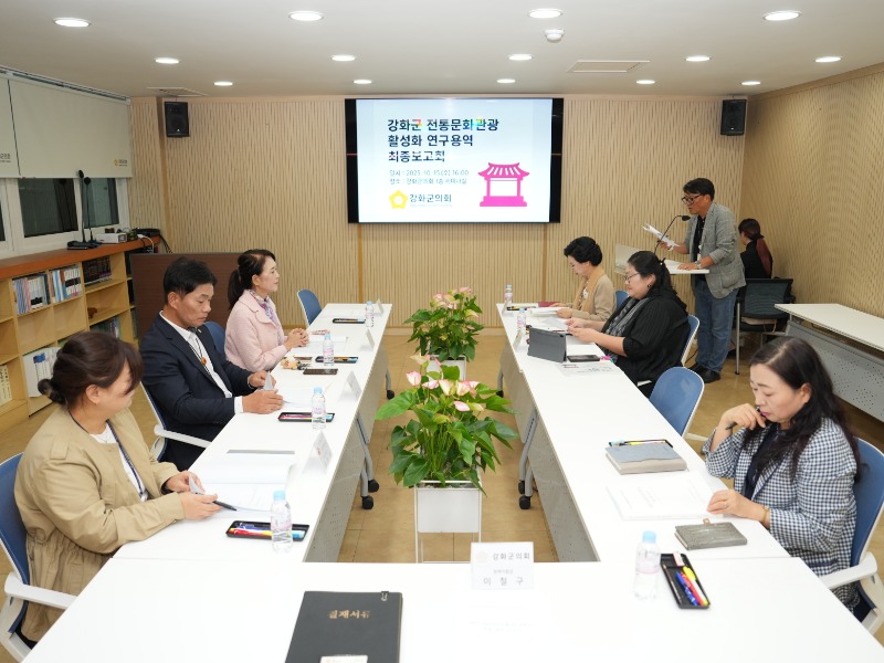 강화군의회(의장 한승희)는 지역 특성을 살린 지속 가능한 발전전략을 마련하기 위해 추진해 온 두 건의 정책연구용역 「스포츠마케팅을 통한 지역경제 활성화 정책연구」와 「강화군 전통문화관광 활성화 연구」의 최종보고회를 최근 개최하며 연구 성과를 공유했다.