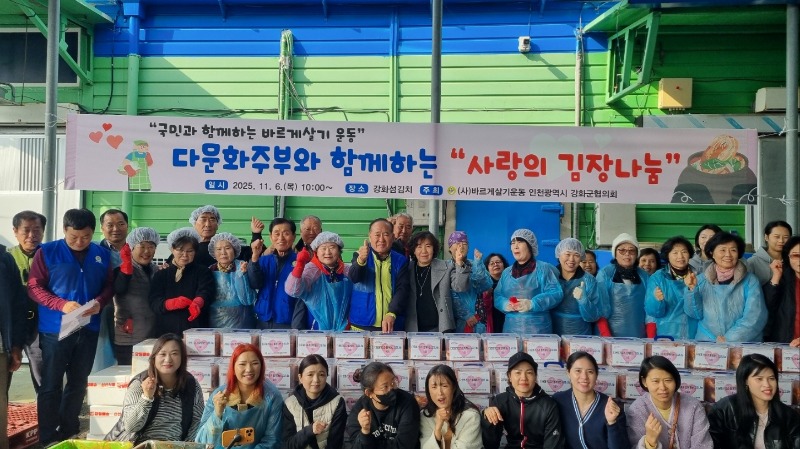 바르게살기운동 강화군협의회 임인관 회장은 “다문화 주부들과 함께한 김장 나눔 행사는 이웃사랑과 다양한 문화가 어우러지는 뜻깊은 자리였다”며 “앞으로도 군민 모두가 따뜻한 마음으로 함께할 수 있는 나눔 활동을 지속해 나가겠다”고 말했다.