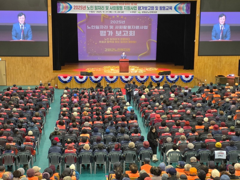 강화군노인복지관(관장 윤심)이 지난 27일~28일, 강화문예회관 대공연장에서 ‘2025년 노인 일자리 및 사회활동 지원 사업 평가보고회 및 활동 교육’을 개최했다.