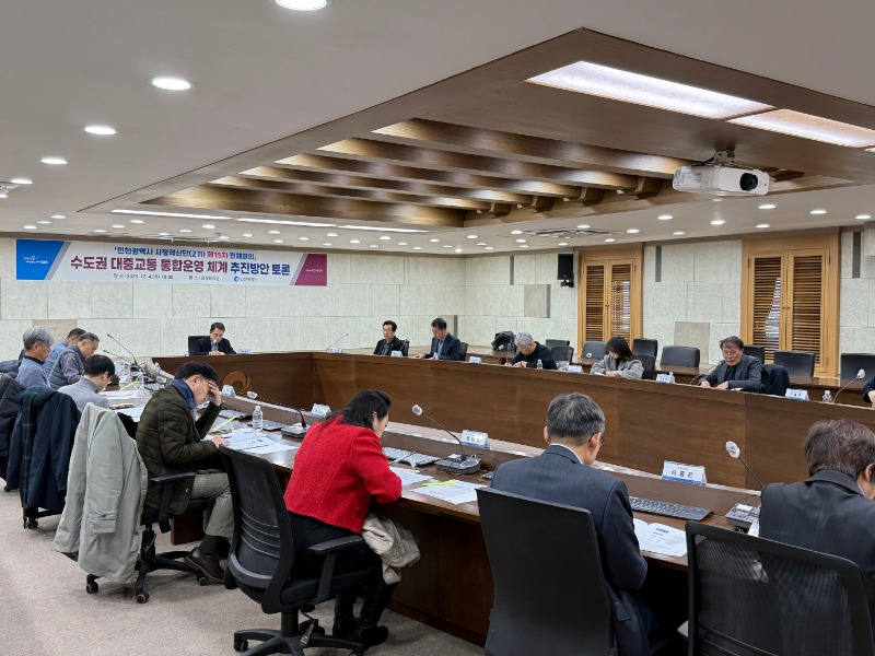 인천광역시(시장 유정복)는 12월 4일 시청 영상회의실에서 ‘수도권 대중교통 통합운영체계 구축방안’을 주제로 정책토론회를 개최했다고 밝혔다.