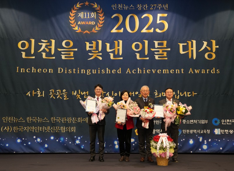 한편 ‘2025 인천을 빛낸 인물 대상’ 주요 수상자로는 인천시장상 한상원 호세요양원 대표, 인천의정대상 박선원·모경종 국회의원, 자치행정대상 박용철 강화군수, 의정봉사대상 임관만 중구·김종득 계양구 시의원 등이 선정되며, 각자의 자리에서 인천의 내일을 밝혀온 공로를 인정받았다.