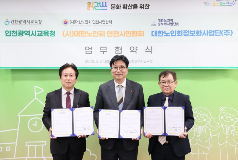 인천광역시교육청(교육감 도성훈)은 31일 (사)대한노인회 인천광역시연합회, 대한노인회 정보화사업단과 ‘읽걷쓰 시민문화 확산을 위한 업무협약’을 체결했다.