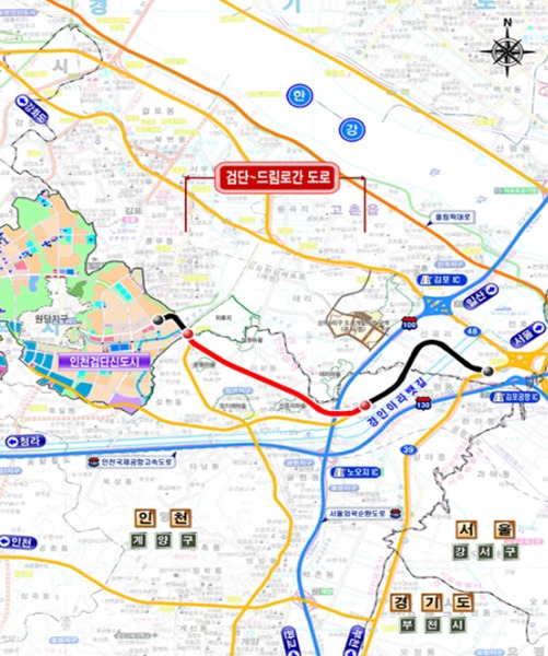 인천광역시(시장 유정복)와 한국토지주택공사(LH)는 검단지역 광역교통개선을 위해 추진해 온 검단∼드림로간 연결도로를 4월8일 오후 2시에 개통한다고 밝혔다.