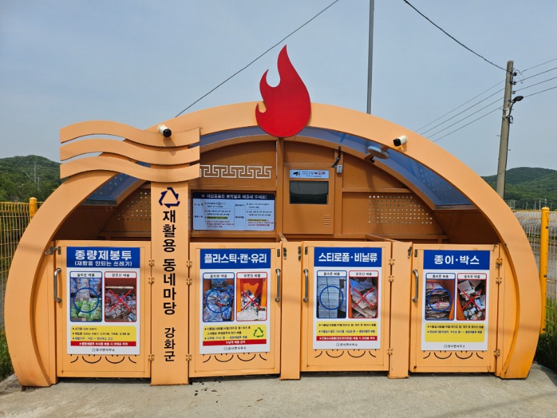 ‘스마트 참여형 재활용 동네마당 개선사업’은 올바른 쓰레기 분리배출 문화 정착을 위해 스마트 기술을 접목한 사업이다. 쓰레기 배출량이 많은 강화읍 소재 재활용 동네마당에 모션 인식 카메라, 센서, LED 조명 등을 설치해 종량제봉투 미사용이나 비분리 배출 시 경고 음성이 자동 안내되도록 할 계획이다.