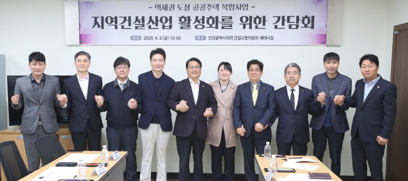 인천광역시의회 건설교통위원회(위원장 김대중)는 3일 시의회 세미나실에서 ‘인천 역세권 도심 공공주택 복합사업 지역 건설산업 활성화 간담회’를 개최했다.
