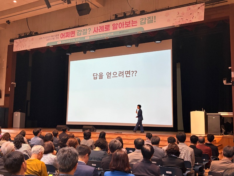 「어쩌면 갑질? 사례로 알아보는 갑질!」을 주제로, 청렴교육 전문강사가 교육 현장에서 발생하기 쉬운 사례를 중심의 갑질 판단 기준과 관련 법령, 대응 절차를 구체적으로 안내한다.